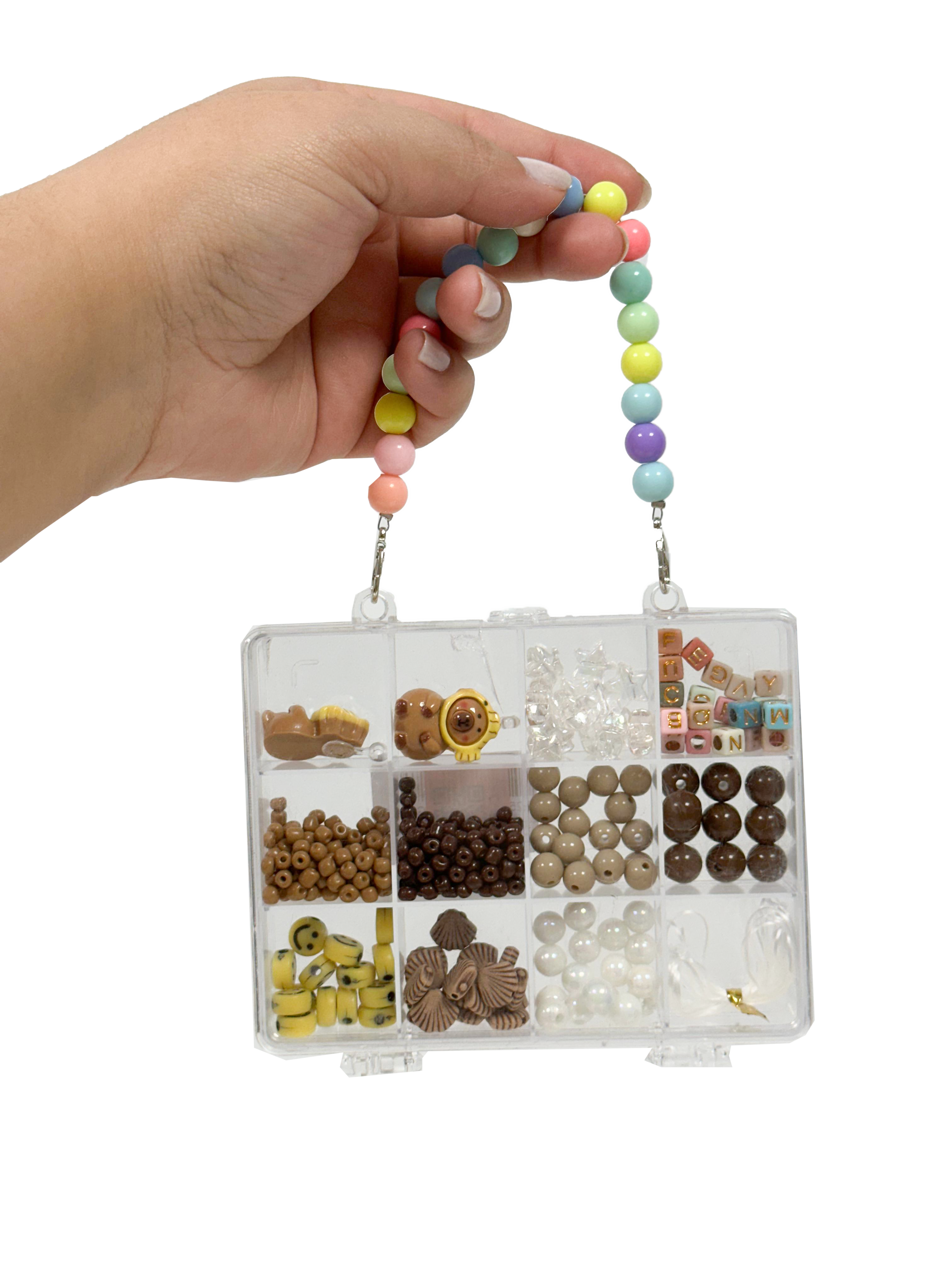 Un práctico estuche con manija, que incluye 12 divisiones con 12 modelos de cuentas para crear pulseras, collares y accesorios de capibara súper originales ¡Colorido, crativo y fácil de llevar a todos lados!