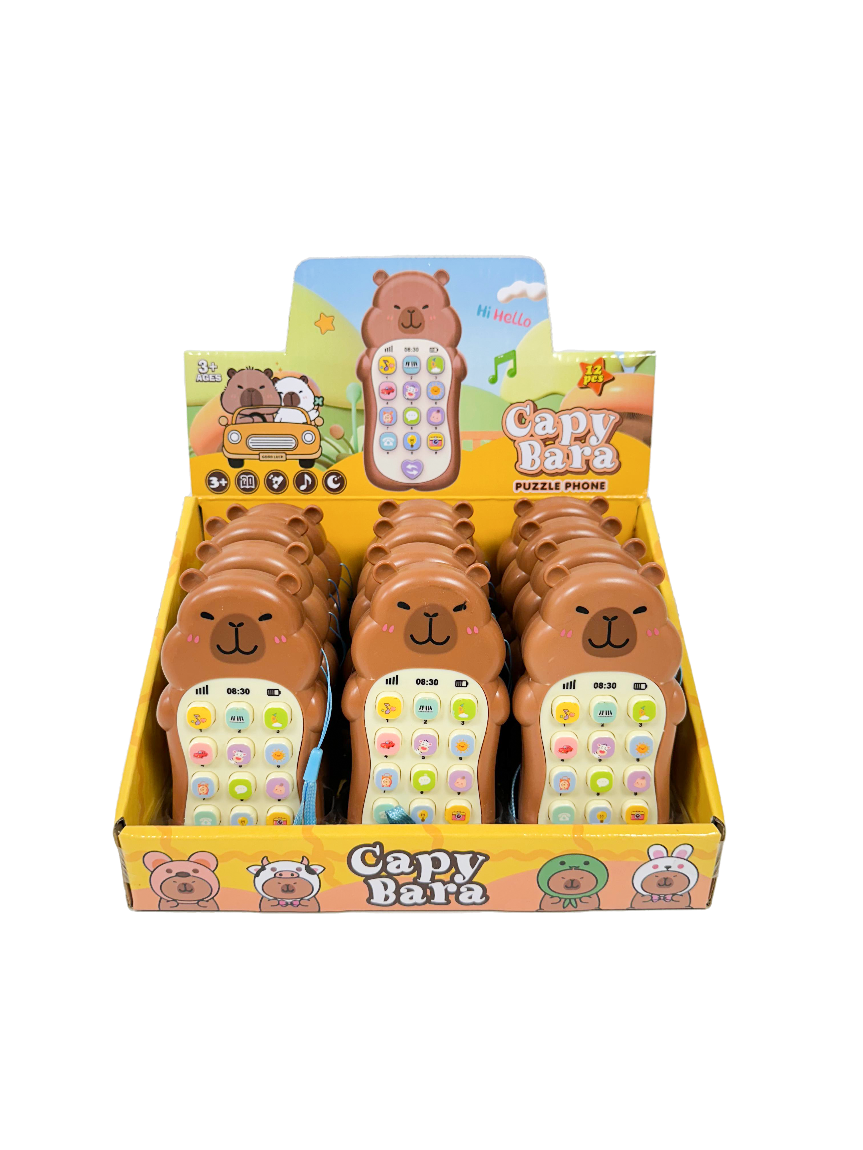 Con sonidos, luces y melodías infantiles, este simpático teléfono en forma de capybara es el compañero ideal para los más chicos. Estimula el juego, la imaginación y el aprendizaje mientras se diverten con cada botón. Vienen en un display de 12 unidades.
