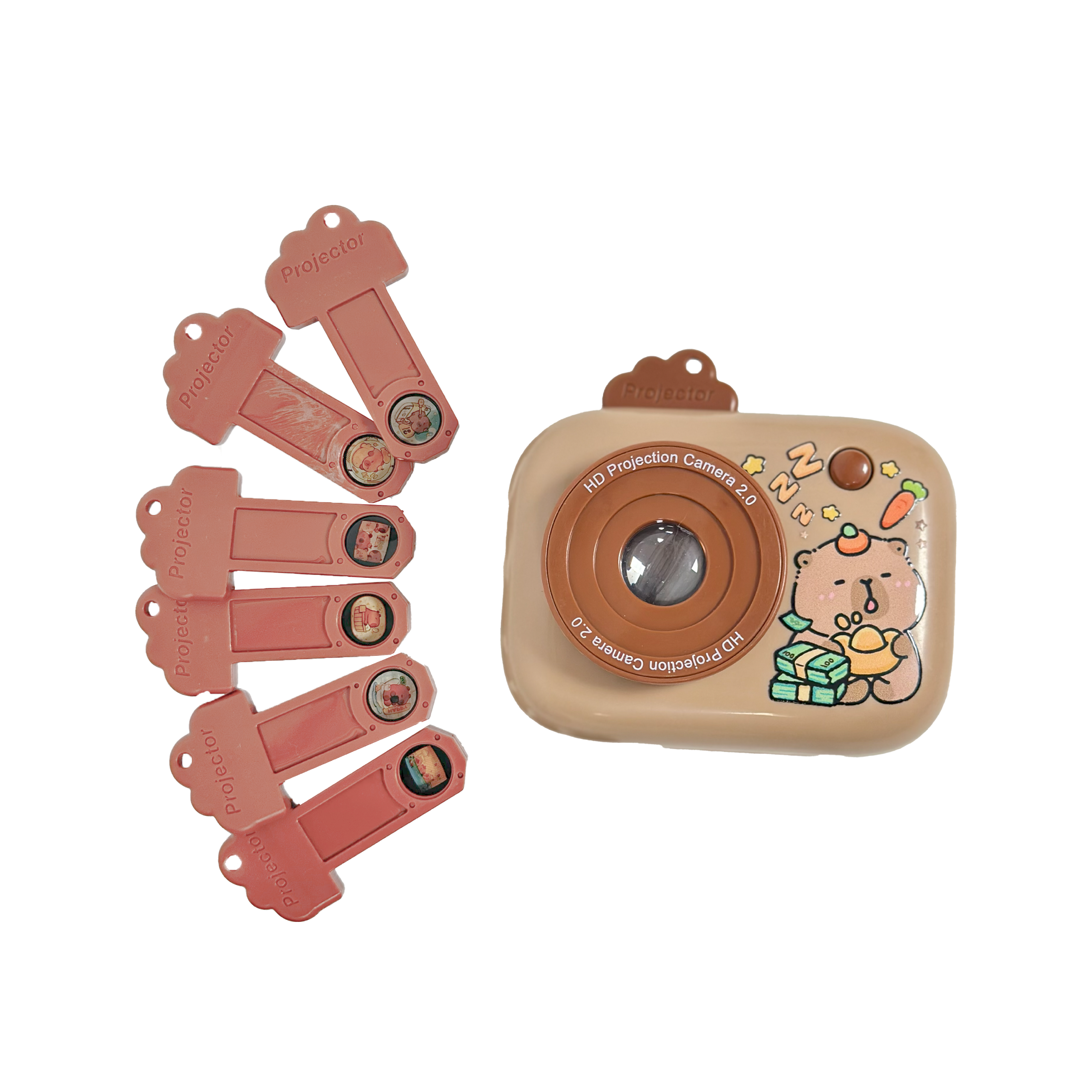 Incluye 1 cámara con luz y 8 filiminas listas para proyectar en la pared: apagá la luz, mirá las imágenes y creá tus propias historias de capybara. Un juego lleno de imaginación para pasar horas inventando aventuras y disfrutando de la magia de las proyecciones.