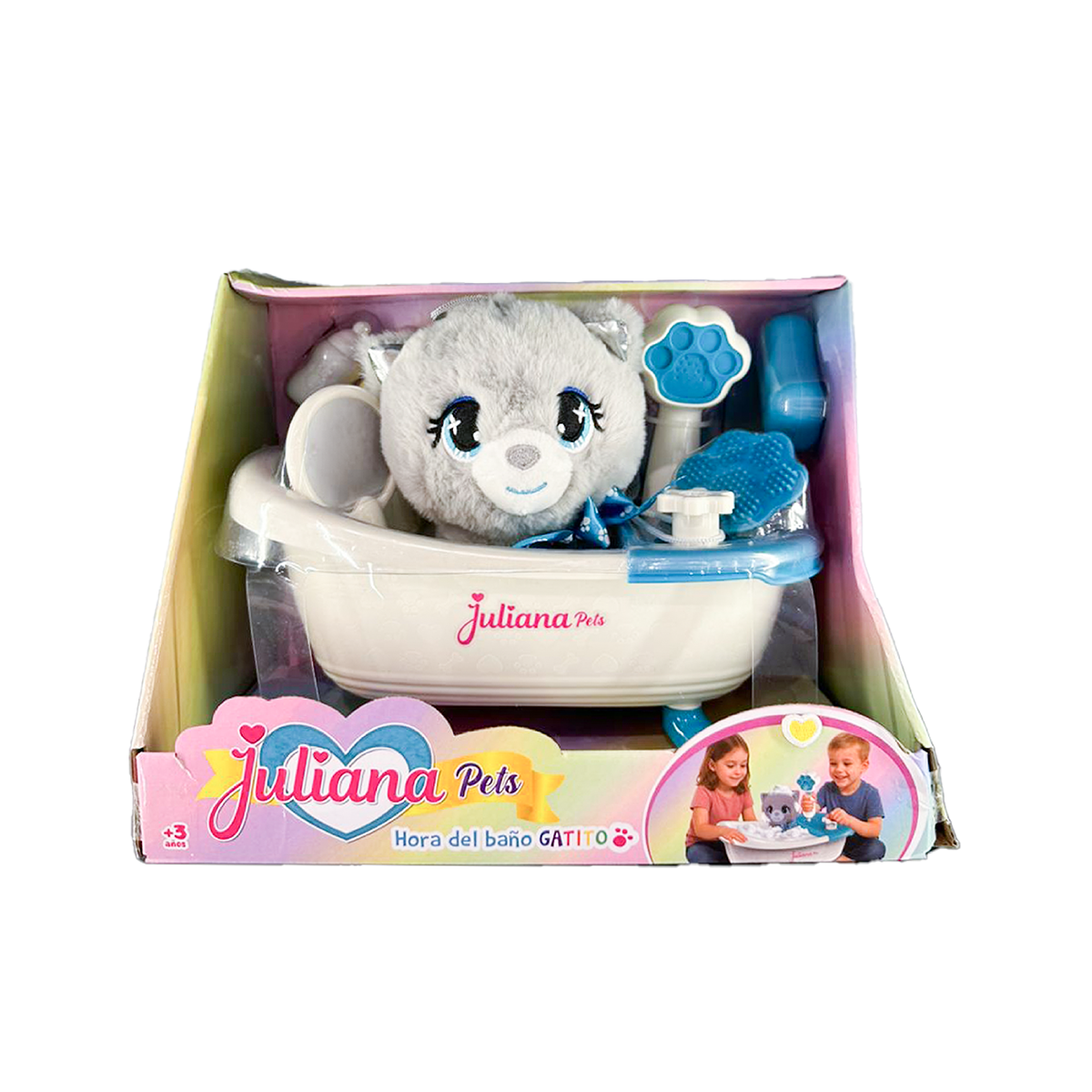 Hora del baño con tus mascotas más tiernas. Con este set podés bañar, peinar, cuidar y mimar a tu mascota mientras jugás. La bañera incluye su mascotita y un duchador que sale agua de verdad, para que los peques puedan mojarla, enjuagarla y dejarla secar. Diversión y cuidado en un solo juego.