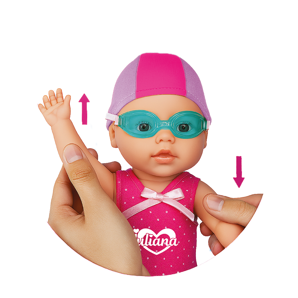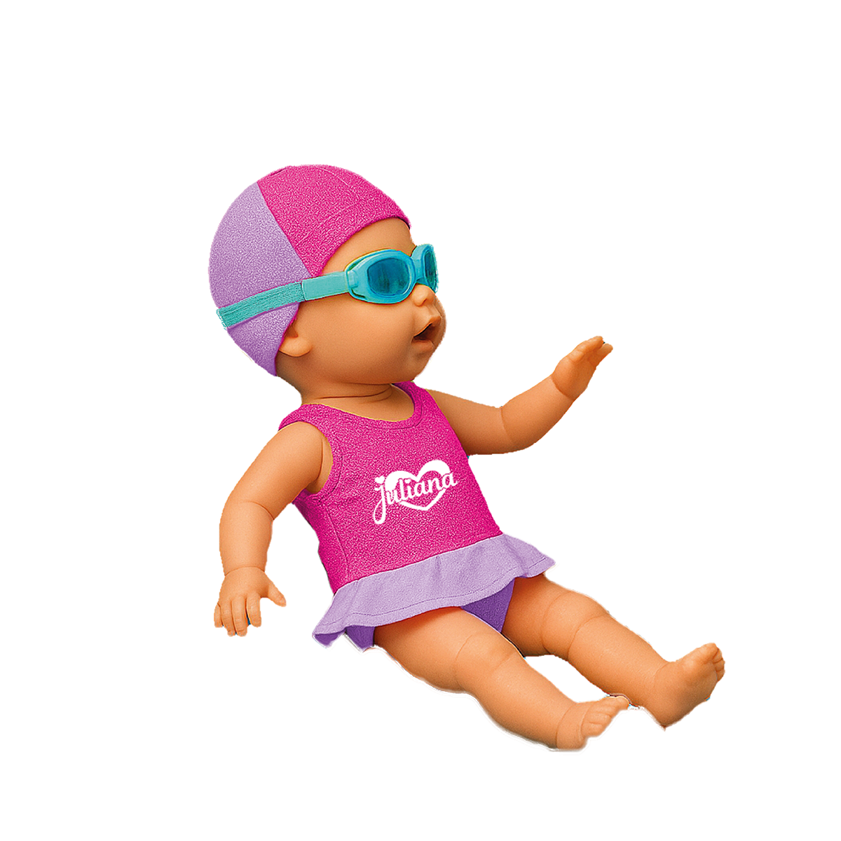 ¡Nadá y divertite con tu muñeca! Con movimiento de brazos, piernas y cabeza, tu muñeca nada en el agua mientras vos jugás con ella. Viene con ropa que se puede mojar, antiparras y toalla para disfrutar horas de diversión en la pileta o la bañera.