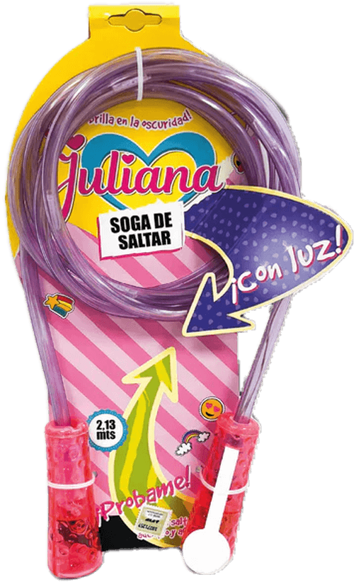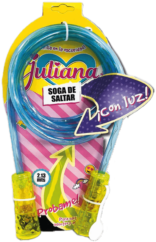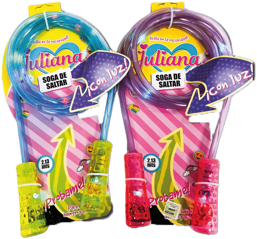 Soga de saltar de 2,13 m, disponible en 3 colores, ideal para jugar adentro o afuera. Además, ¡brilla en la oscuridad con luz incorporada! Diversión activa y segura para grandes y chicos.
